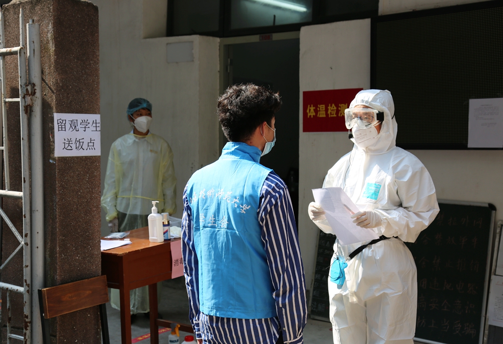 骆少明首先感谢市、区、街道和属地派出所等一直以来对我校工作特别是疫情防控工作的支持,感谢所有参与今天模拟演练人员的辛勤付出。骆少明指出,今天的模拟演练很好地按照教育厅的要求圆满完成了任务,达到了预期目的。骆少明希望,在接下来的时间,还要尽可能把学校疫情防控的各项工作做得更细,确保万无一失。