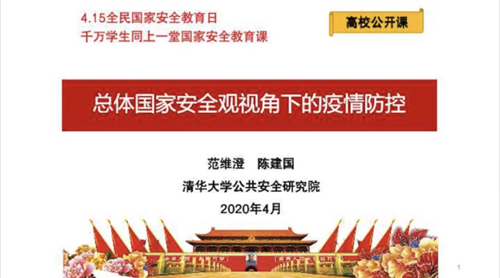 学校组织开展“千万学生同上一堂国家安全教育课”活动,全校各班级通过中国大学生在线、易班网、国家开放大学网站及有关在线教育平台观看教育部推出的“2020年全民国家安全教育日高校公开课”视频,深入学习在国家安全视角下的疫情防控工作。
