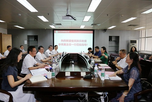 在座谈会上,凌靖波代表学校对李秀英一行表示热烈欢迎,并感谢省民族宗教委一直以来对学校建设和发展的关心和支持。