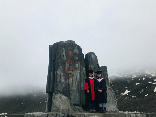 此刻,在雪域高原初夏的猎猎冷风的吹拂下,在色季拉山垭口石碑旁,朱敏老师亲手将李霞学士帽上的帽穗由右边拨向了左边: