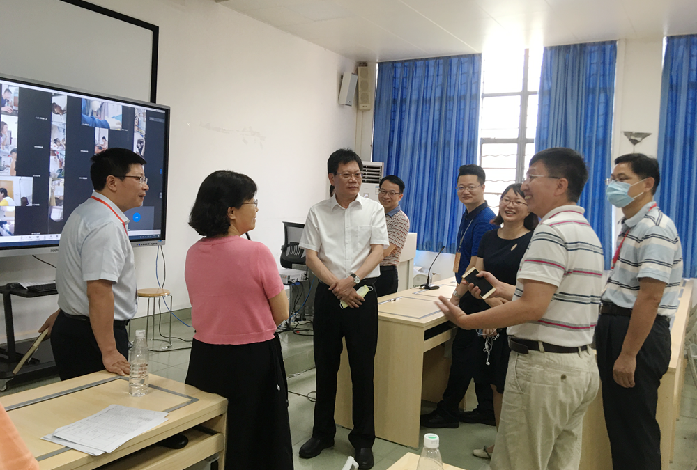 为加强线上课程考核过程管理,保障期末线上课程考核工作顺利进行,7月6日,学校党委书记凌靖波、副校长许玲率党委办公室、教务处负责人及各教学单位教学院长在东校区网络信息中心视频会议室开展线上巡考。