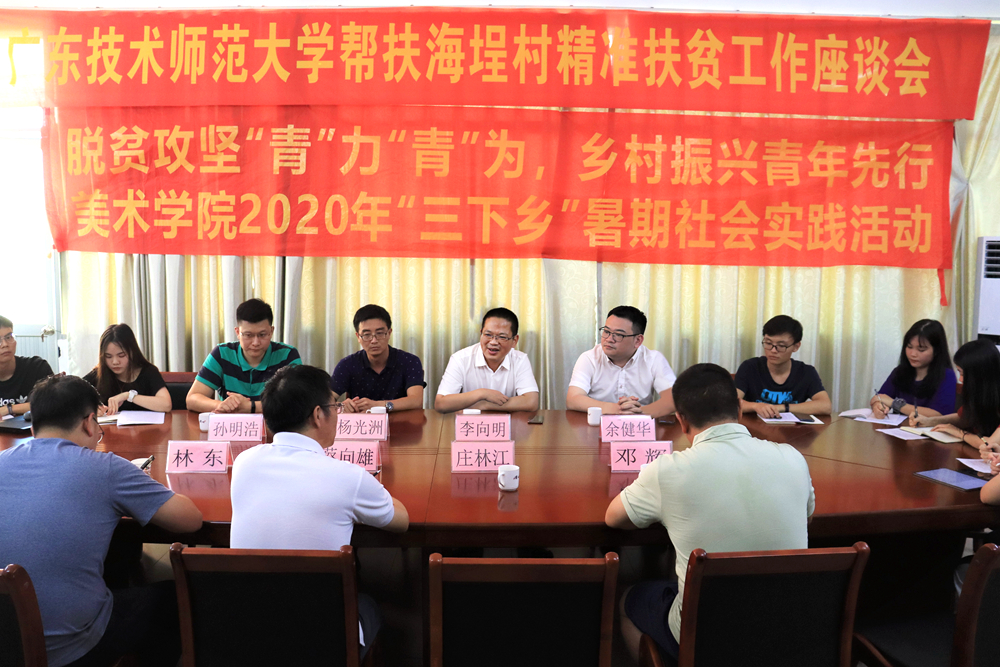 为深入贯彻落实2020年脱贫攻坚收官之年的各项工作,进一步了解我校驻村帮扶情况及各项工作进展情况,看望慰问驻村工作队及美术学院“同心筑梦队”大学生“三下乡”暑期社会实践队伍,7月27日,学校党委副书记李向明率团委、校长办公室等有关部门负责人到我校精准扶贫帮扶点惠来县海埕村开展工作调研,村两委干部、驻村工作队、三下乡暑期社会实践活动全体师生参加调研座谈会。