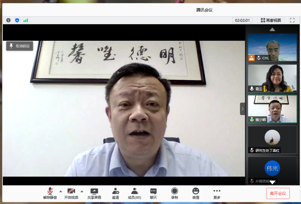 8月3日,我校召开2020年暑期研究生教育工作视频电话会议。学校校长骆少明出席并讲话。会议由主管研究生教育工作的学校副校长戴青云主持。各研究生培养单位党委(党总支)书记、副书记、院长、分管研究生工作的副院长、研究生辅导员、研究生教学秘书,研究生处全体人员参加了会议。