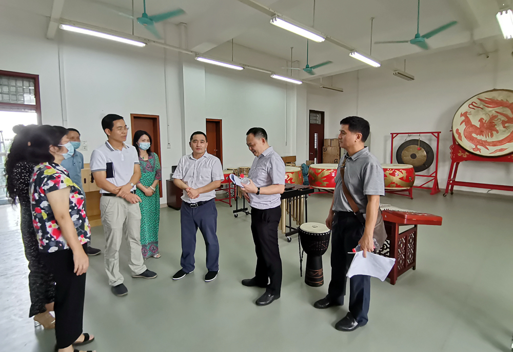 在学校有关部门负责人的陪同下,专家组还通过实地考察的形式,先后到非遗传承大师工坊、校史馆、音乐学院和省民族艺术团排练室、图书馆等校园场所检查文明校园创建情况,并就校园环境美化、创文氛围营造、宣传标语设置、消防器材检验、便民服务提升等方面提出了专业、具体的指导建议和意见。