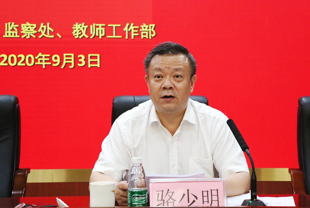 骆少明为会议作总结。他就纪律教育学习月和师德建设主题月的有效开展向各单位、各部门提出了三点意见:一是要认真学习贯彻动员讲话精神和具体工作部署,把师德建设主题教育月与纪律教育学习月结合起来,认真组织开展好此次教育学习;二是要结合本单位、本部门工作实际,细化活动方案,切实把此次学习活动抓实抓细抓出成效;三是要把活动与学校疫情防控工作和疫情防控安全知识教育结合起来,全面做好学校疫情防控工作,加强疫情防控安全知识教育。