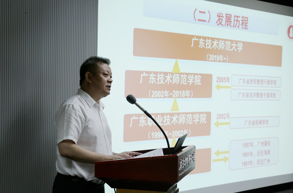 学校校长骆少明教授代表学校全体教职员工对专家组进校现场考查表示热烈欢迎,并以“坚定不移培养高素质“工匠之师”为题,从“学校发展历史沿革”“师范专业建设概况”“师范专业建设措施”“师范专业建设成效”“下阶段工作计划”五个方面向专家组进行汇报。