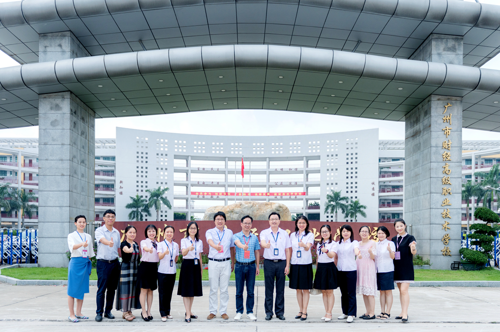 图为认证专家组成员王景魁(高级职称)实地考察我校财务会计教育专业教育实习基地广州市财经商贸职业学校(筹),并与该校领导及校友合影