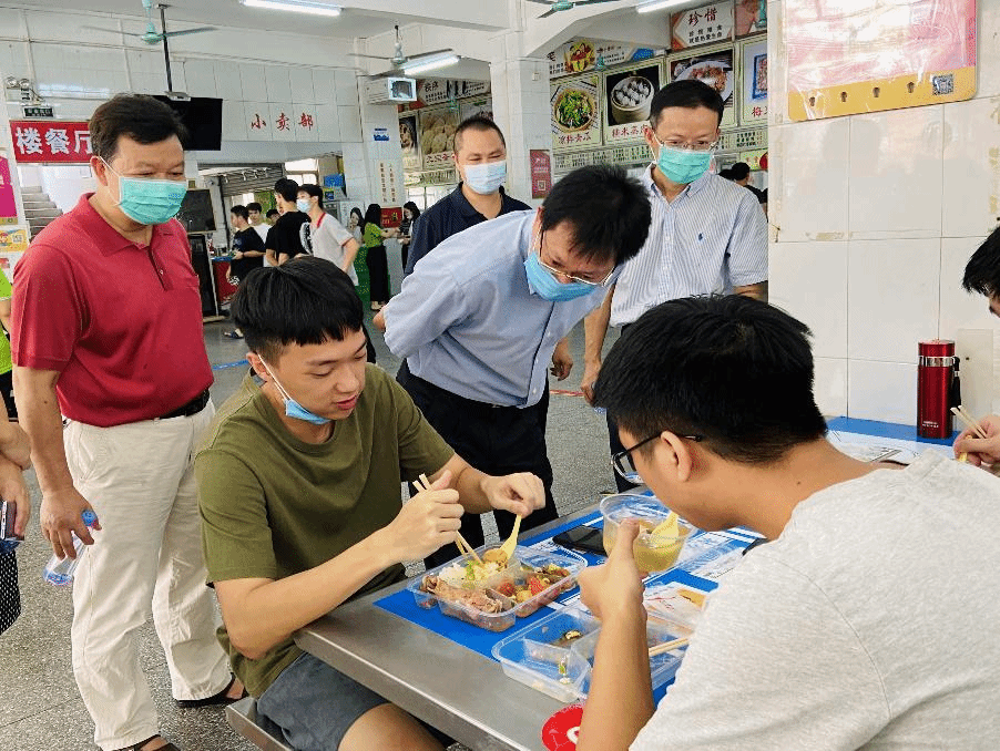 凌靖波一行深入西校区、北校区学生宿舍、实验室和食堂等重点场所,通过实地察看、走访交谈等形式,详细了解学生的思想、学习和生活情况,检查了疫情防控、校区基本设施、生活配套、教学环境、宿舍环境、搬迁安排等工作,并就相关问题与师生员工进行了深入交流。
