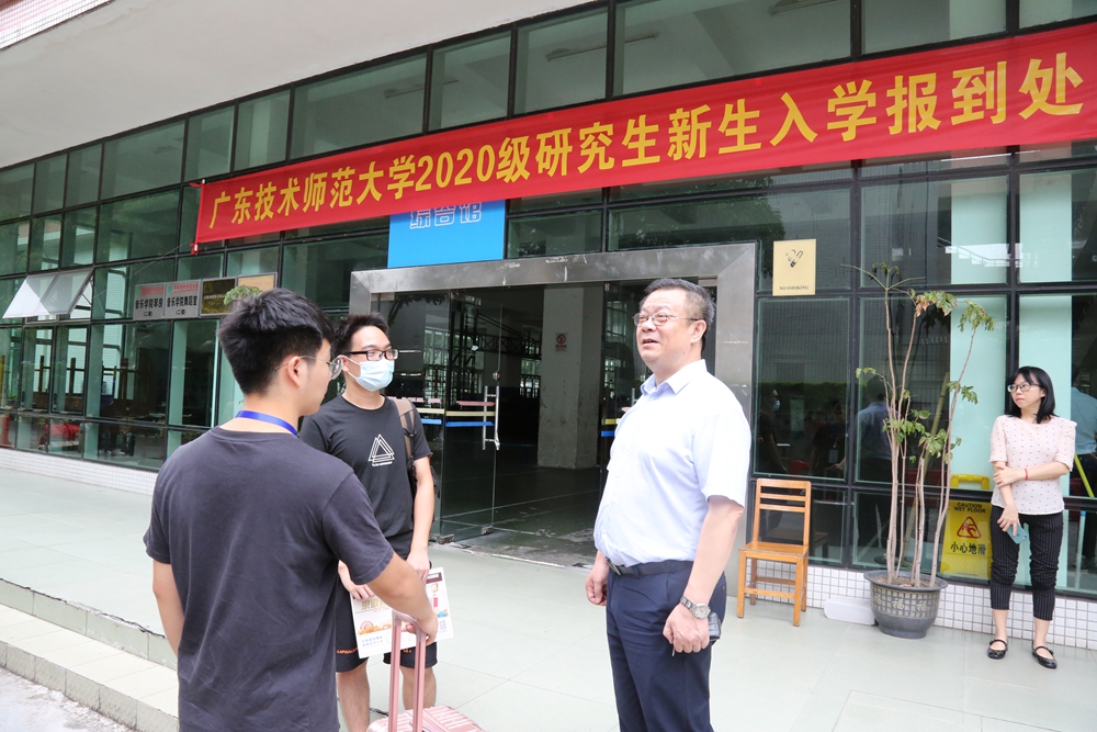 下午,戴青云一行来到白云校区迎新现场,了解研究生新生的学习生活环境,并实地查看了新生课室和图书馆等地,嘱托相关部门一定要做好研究生的教育培养工作。