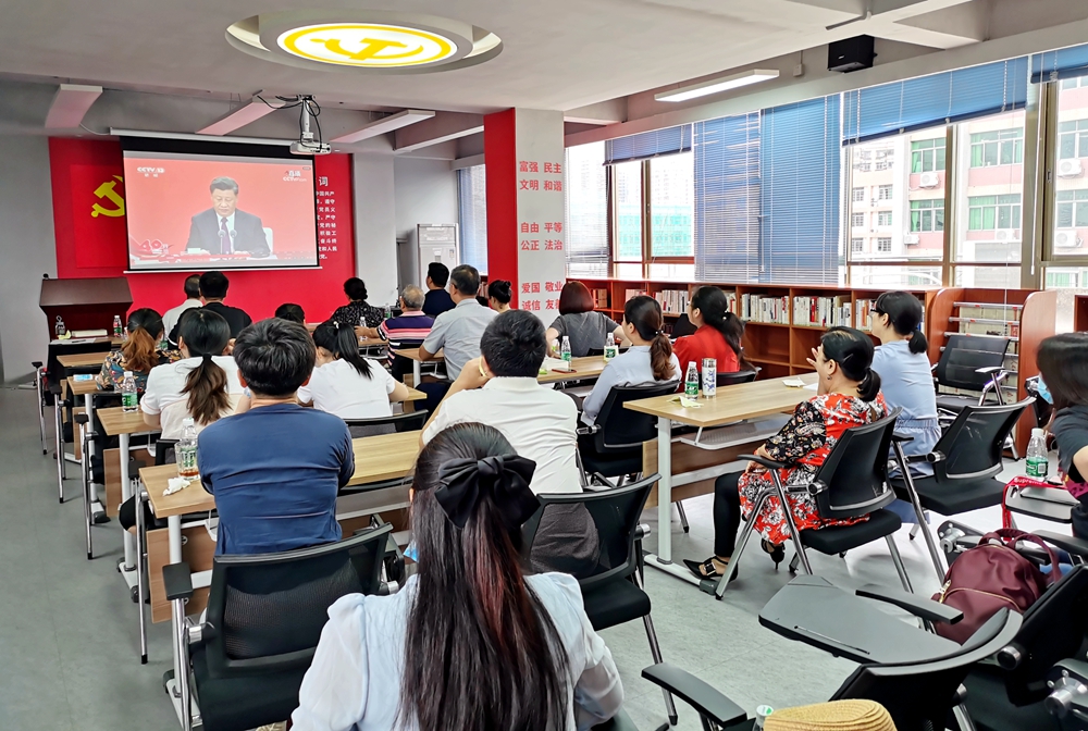 按照学校党委统一部署,当天上午,各单位积极组织没课的师生党员在多媒体教室、会议室、实验室、党员活动室、食堂等地方,通过电视、网络等方式收看了庆祝大会盛况。