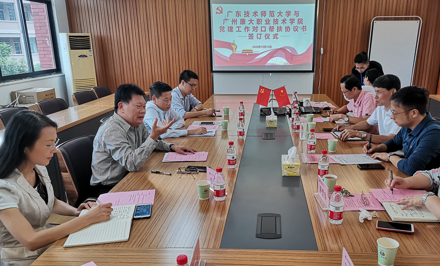 据悉,今年9月上旬,省委教育工委印发《中共广东省委教育工委关于开展公办高校与民办高校党建对口帮扶工作的通知》,安排我校与广州康大职业技术学院开展党建对口帮扶工作。我校党委专门成立党建对口帮扶工作领导小组,将发挥我校党建工作的榜样示范作用,引领广州康大职业技术学院进一步加强基层党组织建设,推动其在党的领导、政治建设、作用发挥、队伍建设等方面更上新台阶。本次对口帮扶工作将主要围绕基层党组织“共创共建”、制度建设同步推进、政工干部互派互助、教育学习资源共享以及其他有利于加强党建工作的形式等五个方面开展帮扶活动,对口帮扶工作周期为两年。