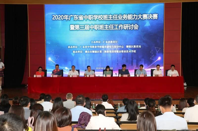由广东省教育厅主办,广东省中职学校德育研究与指导中心、顺德区教育局承办的2020年广东省中职学校班主任业务能力大赛决赛,10月16-18日在佛山市顺德区郑敬诒职业技术学校举行,来自全省中职学校33名班主任参加决赛,广州市幼儿师范学校的何艳红等12名选手获得一等奖,东莞经济贸易学校的叶翠萍等20名选手获得二等奖,珠海市卫生学校的薛雨等32名选手获得三等奖。据悉,获得一等奖的选手将代表我省参加全国比赛。