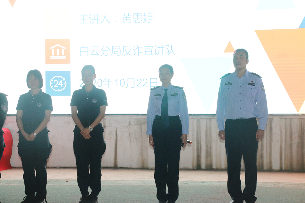 为深入开展校园禁毒和防范电信网络诈骗等安全教育活动,有效维护师生身体健康和财产安全,确保学校安全稳定,10月22日,学校邀请广州市禁毒办禁毒专家郑志进处长,白云公安分局邓慧菲、江高派出所副所长柯颖晖等警官一行8人为白云校区师生作预防毒品教育暨防范电信网络诈骗报告,学校副校长黄秋文,保卫处、学生处、团委等部门负责人,白云校区各二级学院分管学生工作副书记、辅导员以及2020级新生3000余人参加了宣讲会。