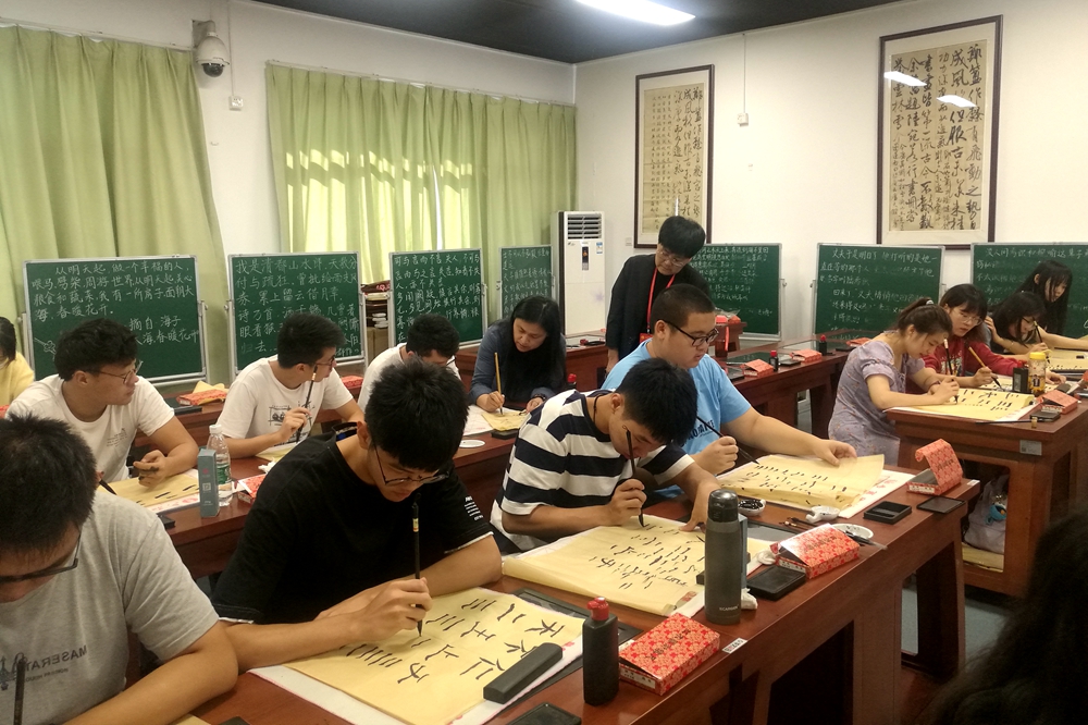 教育部师范类专业认证专家组成员、邢台市第七中学副校长李育红听取数学与应用数学师范生三笔字训练课程。