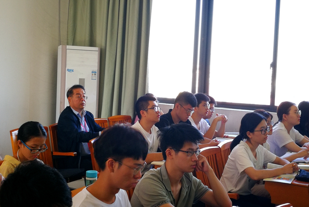 认证专家组组长、华东师范大学数学科学学院首席特聘授、亚洲数学教育中心主任范良火教授在听取我校数学与应用数学专业师范生《普通物理》课程。
