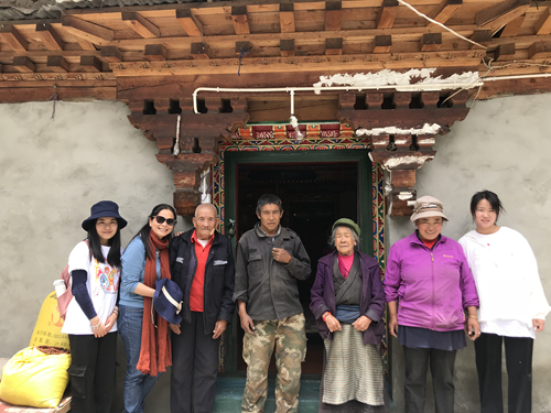 抵达日布村时,正值大雨,扎西旦巴一家刚从田里赶回,一路小跑着过来迎接支教队员去他家做客。妈妈帕加一直热情地招呼老师们吃自家做的奶渣、牛肉干、果干和酥油茶。