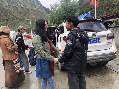 出林芝市区沿雅鲁藏布西行240公里左右,五小时车程可抵朗县县城。支教队带队老师朱敏、支教队员胡碧霞、王蕊一组以朗县县城为根据地,每天一早八点半启程便一头扎进周边更深更远的山里。在时有时无的手机信号间隙,导航时找得到时找不到的陌生地名,在深一脚浅一脚的丈量中展开家访。