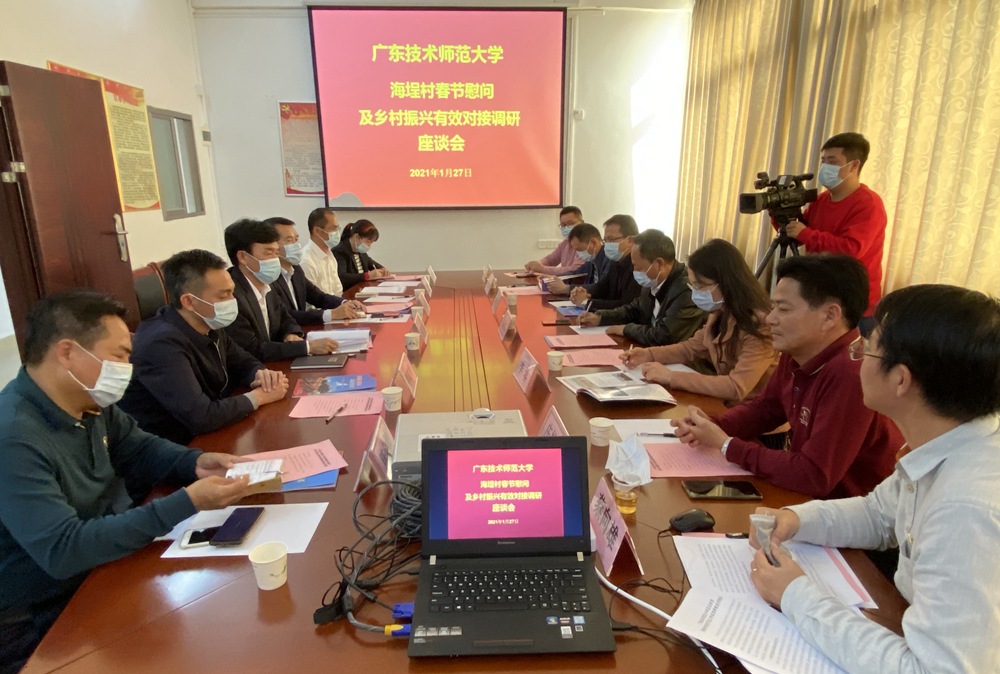 为进一步做好脱贫攻坚收官之年的各项工作,1月27日,学校副校长黄秋文率领组织部、宣传部等部门负责人一行5人,到我校定点帮扶贫困村惠来县隆江镇海埕村开展春节慰问活动及乡村振兴有效衔接调研工作,惠来县委副书记、县长肖辉生、县委常委蔡汉春、镇委副书记、镇长韩晓彬、海埕村党总支书记、村民委员会主任庄林江等县、镇、村领导参加了慰问活动和调研工作。
