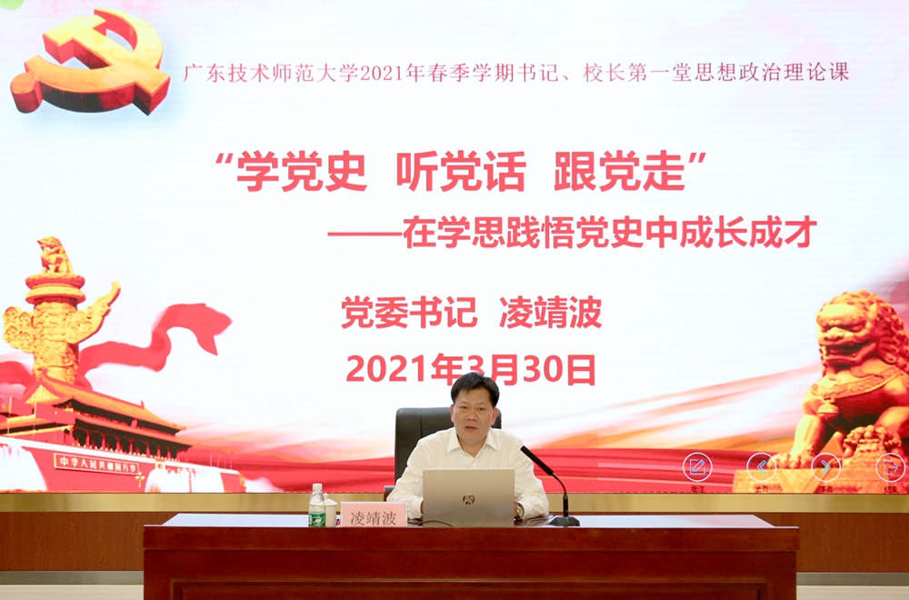 3月30日,学校党委书记凌靖波、校长骆少明分别在东校区一教208讲学厅、白云校区第三教学楼104室讲授2021年春季学期“思政第一课”。学校党委办公室、校长办公室、党委宣传部、学生工作部、团委、部分学院负责人和辅导员、各学院学生代表等一同聆听授课。