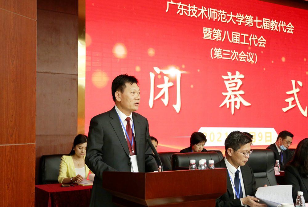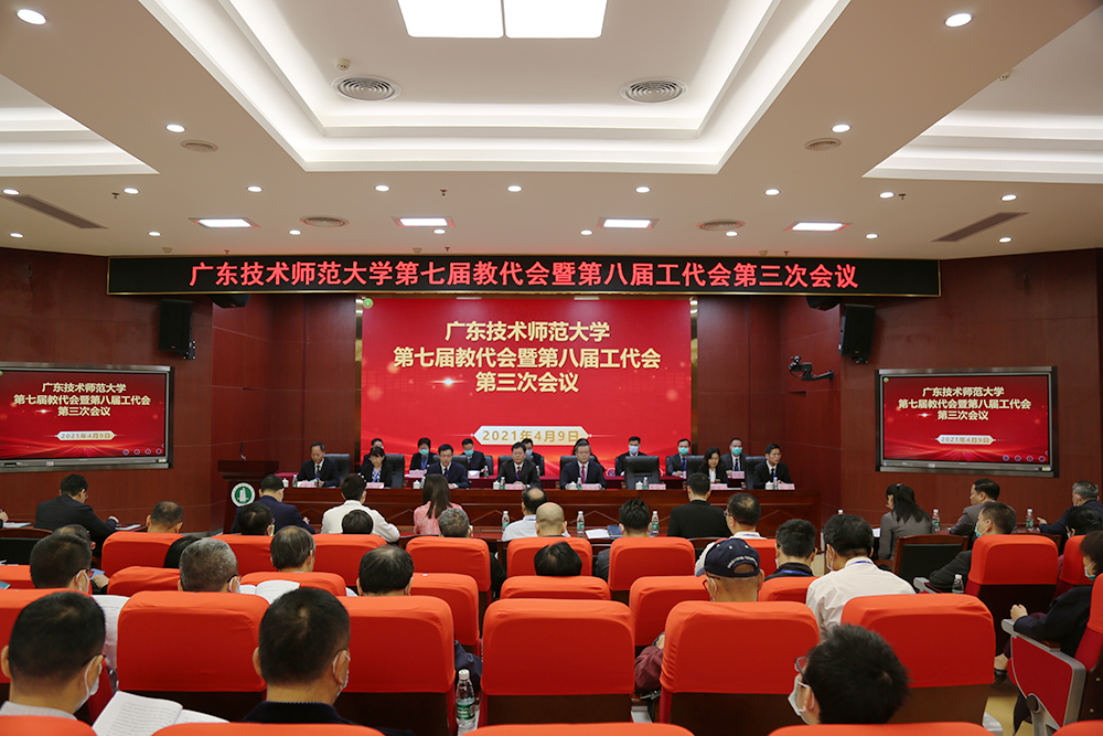 4月9日,广东技术师范大学第七届教代会暨第八届工代会第三次会议在东校区召开。学校领导凌靖波、骆少明、贺勇、李向明、许玲、戴青云、黄秋文、苏晖出席大会,代表齐聚一堂,共谋学校改革发展大计。