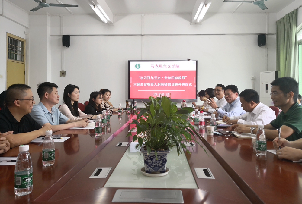 为深入学习习近平总书记在党史学习教育动员大会上的重要讲话精神,做到学史明理、学史增信、学史崇德、学史力行,进一步落实习近平总书记在学校思想政治理论课教师座谈会上的重要讲话精神,培养政治要强、情怀要深、思维要新、视野要广、自律要严、人格要正的思政课教师队伍,4月16日下午,马克思主义学院在东校区马克思主义学院会议室举行“学习百年党史•争做四有教师”主题教育暨新入职教师培训班开班仪式。学校党委书记凌靖波出席开班仪式并作讲话,马克思主义学院班子成员、近三年新入职教师和全体2020级研究生等40多人参加会议。