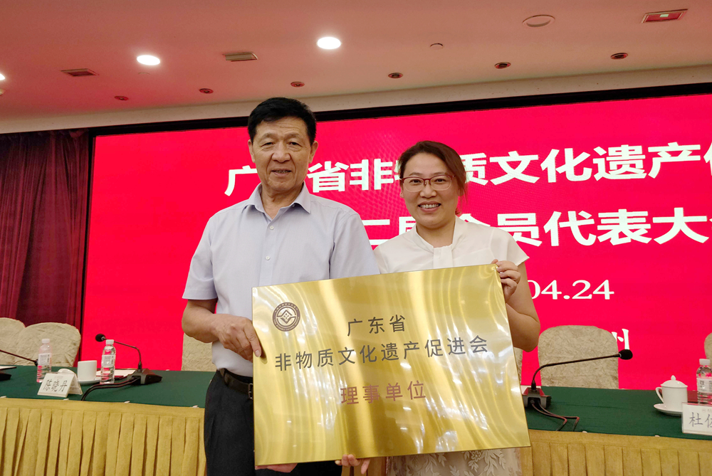 近日,广东省非物质文化遗产促进会在广东迎宾馆举办第二次会员代表大会,相关部门领导、专家和会员代表共270多人出席会议。我校美术学院被大会授予“广东省非物质文化遗产促进会理事单位”,美术学院党委书记苏敏获聘常务理事,学院副院长陈静敏获聘理事,并现场获颁牌匾和聘书。