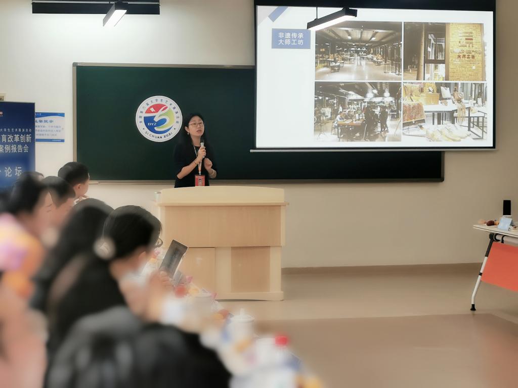 近日,全国第六届大学生艺术展演活动在四川省成都市开幕,我校美育改革创新优秀案例《高校美育服务社会路径的发展与创新——以广东技术师范大学美术学院“一工一坊”美育共享品牌化建设为例》(作者:苏敏、王羊羊、张璐璐)在全国美育改革创新优秀案例展示会上亮相,项目负责人、美术学院党委书记苏敏作汇报。