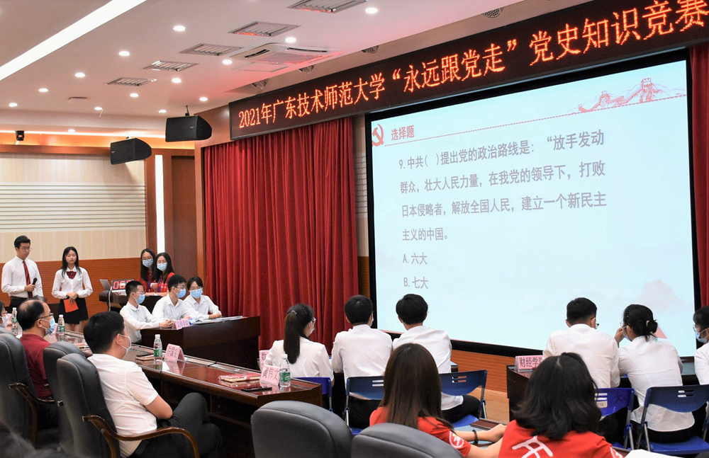 学党史、强信念、跟党走。5月28日,为增进广师大学子学习党史的积极性,深入理解党史内涵,由学校党委主办、文学与传媒学院承办的学校“永远跟党走”党史知识竞赛决赛在白云校区三教报告厅举行。各参赛单位相关负责人、师生代表参加活动,比赛现场严格按照疫情防控的最新要求,所有现场人员隔位落座并全程佩戴好口罩,有序观赛。