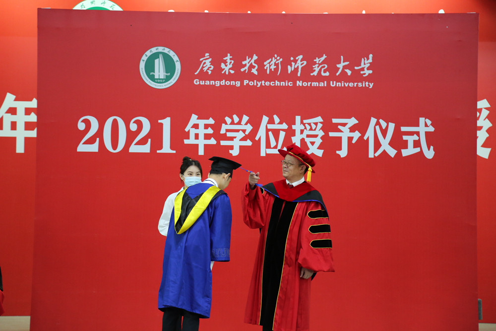 在欢快的乐曲声中,意气风发、踌躇满志的毕业生们依次走上主席台,由身着导师服的骆少明校长为他们扶正流苏、授予学位,并合影留念。学位帽上的流苏被从右到左轻轻地拨过,莘莘学子难忘的求学生涯也画上了圆满的句号。