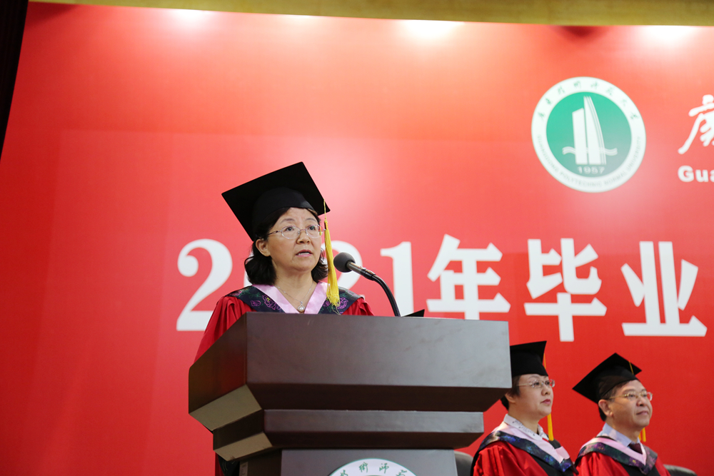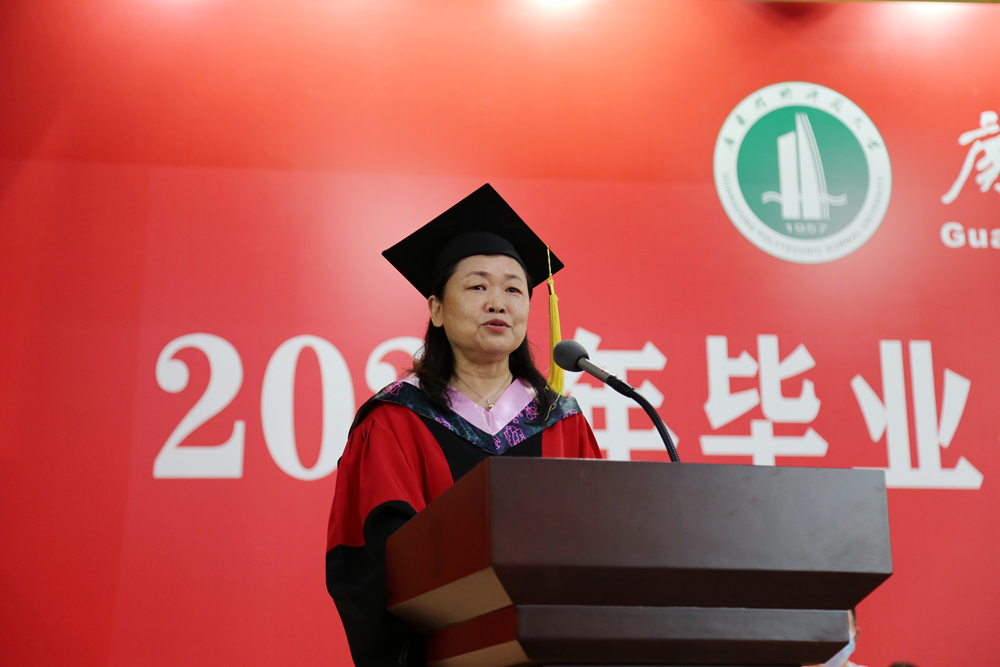骆少明表示,无论身在何方,去到何处,学校将永远是同学们坚强的后盾和温暖的港湾,并代表学校祝毕业生毕业快乐,前程似锦。