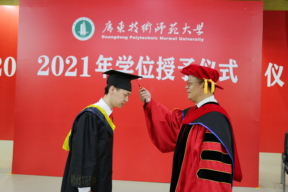 7月2日上午,广东技术师范大学2021年毕业典礼在学校东校区综合馆三楼举行。根据疫情防控要求,典礼采取线上线下相结合的方式进行。全体校领导、有关职能部门和各二级学院负责人、导师代表以及全体2021届毕业生1729人参加了毕业典礼。学校党委副书记李向明主持典礼仪式。