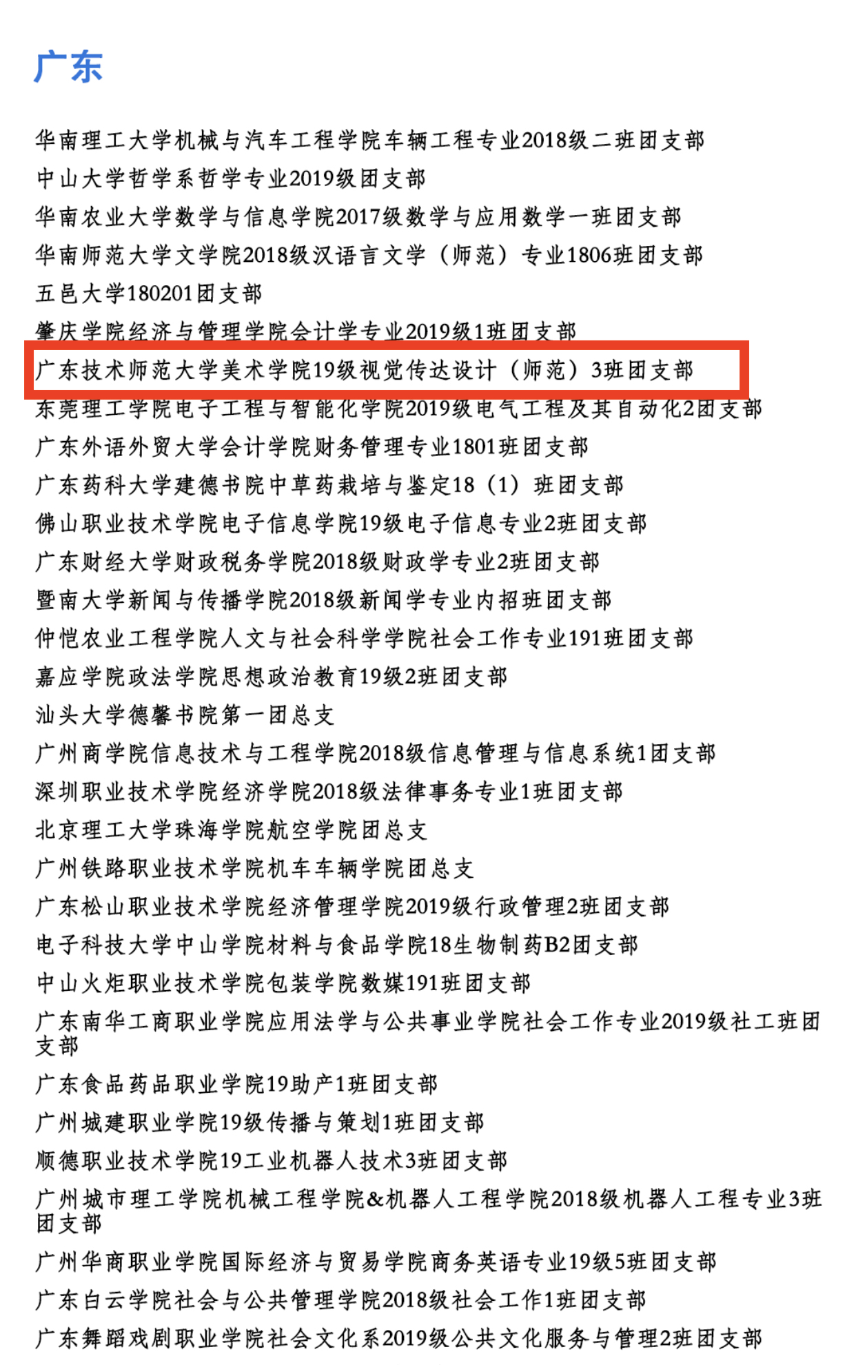 美术学院2019级视觉传达师范3班团支部紧紧围绕“思想引领、志愿服务、社会实践”三大形式推动支部建设,开展“学党史、强信念、跟党走”党史学习教育专题、“百年党史文创研发与推广”、“爱心义卖,暖阳冬日”等活动,进一步彰显团支部组织活力,打造“活力团支部”。2020年12月,美术学院2019级视觉传达师范3班团支部主题团日活动《“舞青春之歌,颂国家之盛”——让青春为祖国绽放》获评广东省高校“活力在基层”主题团日竞赛活动“十佳”项目。