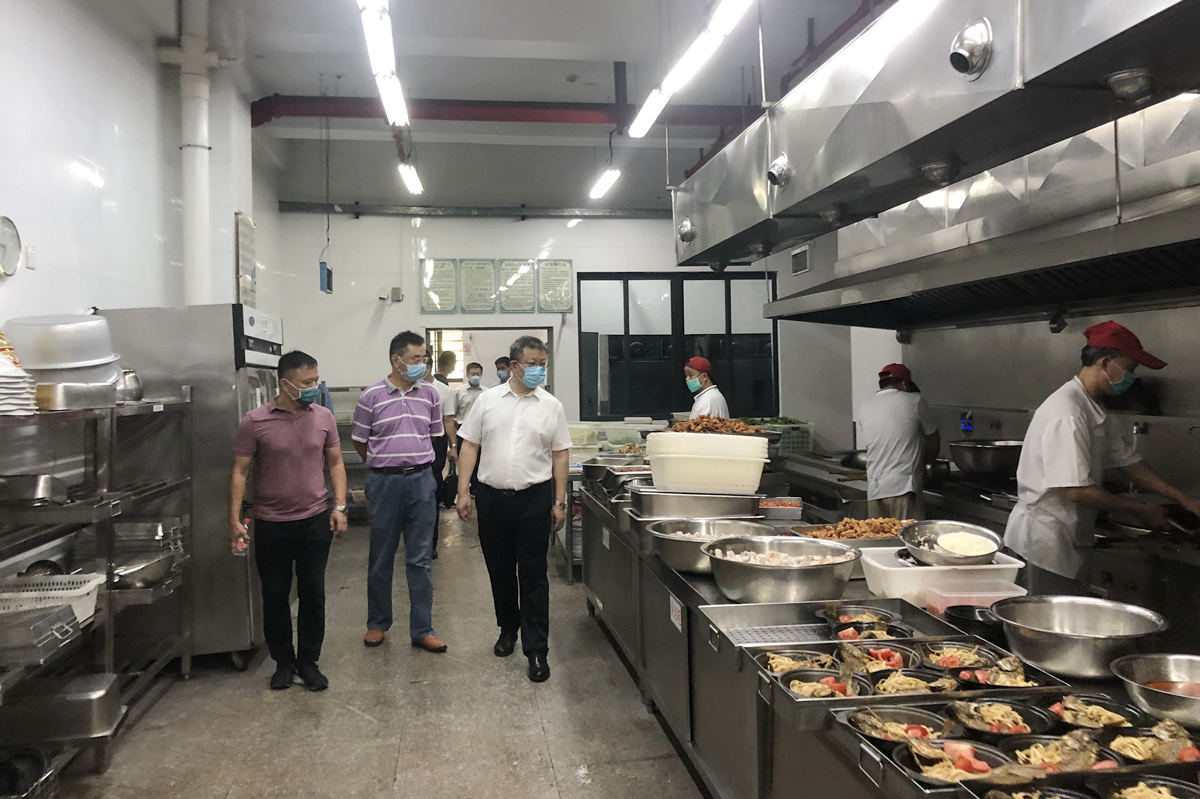 在白云校区第一、第二食堂,骆少明一行走进操作间,仔细检查了食品安全管理情况,重点检查疫情防控工作落实情况,要求饮食服务中心切实把好食品安全和疫情防控关,继续提高服务质量,为返校师生营造安全健康舒适的就餐环境。随后,骆少明来到白云校区新启用的A13、B6学生宿舍区,听取后勤处负责人汇报学生宿舍入住情况,并与返校学生进行了亲切交流,认真了解学生对入住新宿舍的感受与建议,鼓励同学们以最佳状态迎接新学期的学习生活。