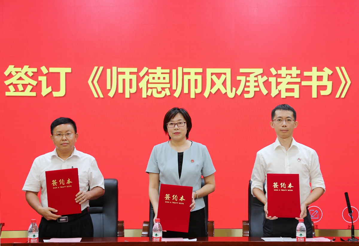 会上,由学校党委书记凌靖波、校长骆少明监誓,党委教师工作部部长许竹君领誓,全体新教师面对五星红旗庄严宣誓。新教师代表还与学校党委教师工作部负责人、所在学院党组织负责人签订师德师风承诺书,郑重承诺坚守职业道德。