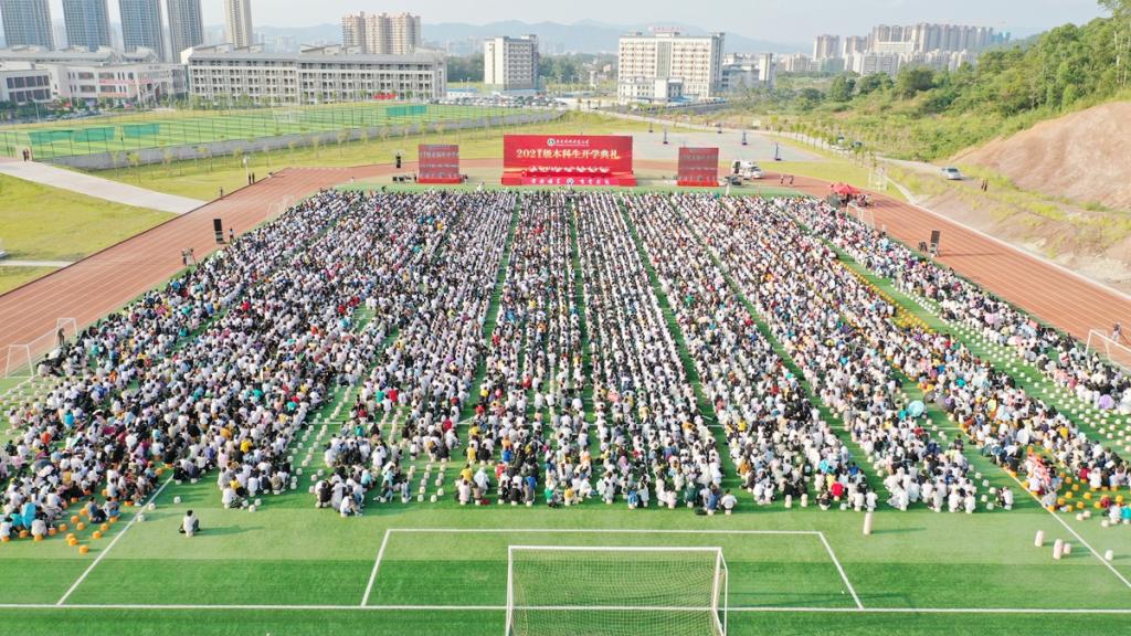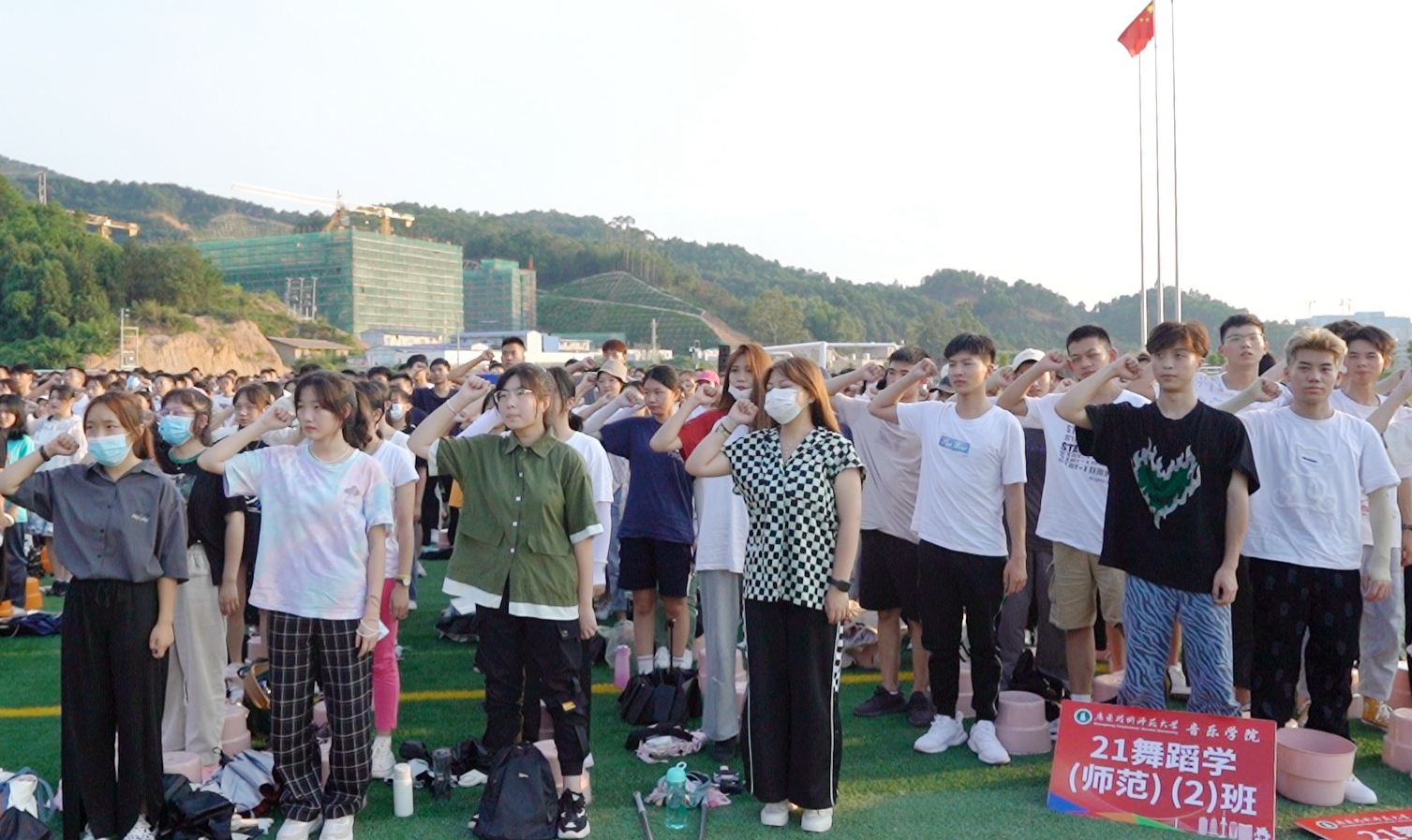 “我是广东技术师范大学2021级学生。我将秉承校训精神,厚德博学,唯实求新;肩负历史使命,爱国励志,求真力行;努力成为堪当民族复兴重任的时代新人!请党放心,强国有我!”在黄梓轩同学的领誓下,典礼在全体8239名新生高声诵读入学誓词中结束。