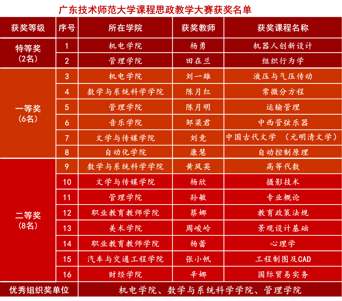 据悉,本次比赛从7月份启动,历时2个多月,受到各教学单位和教师们的积极响应。本次比赛也是学校推荐广东省课程思政教学创新大赛参赛选手的选拔赛,我校将推荐8名优秀选手参加省赛。