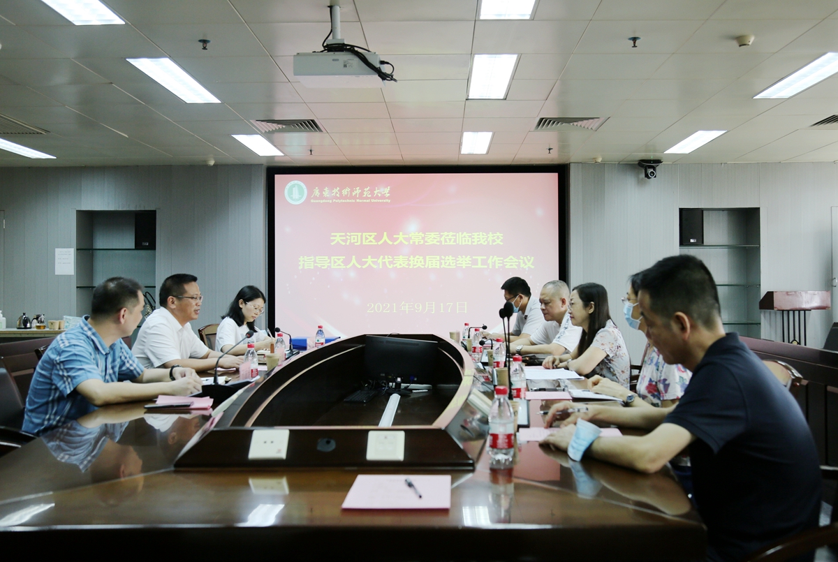 9月17日,天河区人大常委会副主任李笑娟、区人大常委会教科文卫工委主任吕懿华、棠下街党工委书记钟铭兴一行莅临我选区指导人大代表选举工作。学校党委副书记李向明出席了座谈会。
