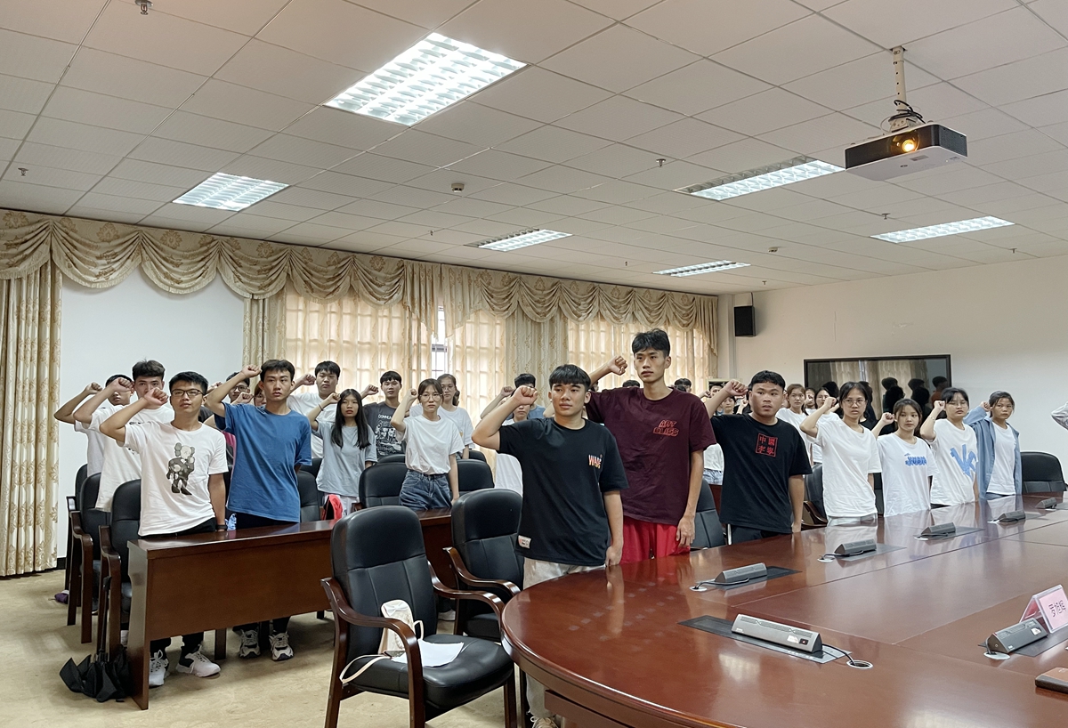 “我是广东技术师范大学2021级学生。我将秉承校训精神,厚德博学,唯实求新;肩负历史使命,爱国励志,求真力行;努力成为堪当民族复兴重任的时代新人!请党放心,强国有我!”在王冰同学的领誓下,典礼在全体预科班新生高声诵读入学誓词中结束。