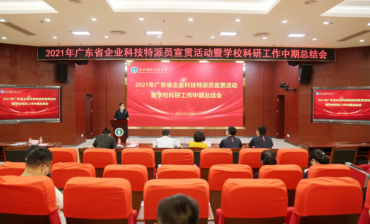 9月27日,2021年广东省企业科技特派员宣贯活动暨学校科研工作中期总结会在东校区一教208报告厅顺利举办。学校副校长戴青云,华南技术转移中心执行总裁廖晓东、业务拓展部副总监闫永骅出席会议。各教学单位、有科研经费任务的教辅机构、科研机构的主要负责人,分管科研的副院长、科研秘书以及近三年新进博士等近150人参加了会议。