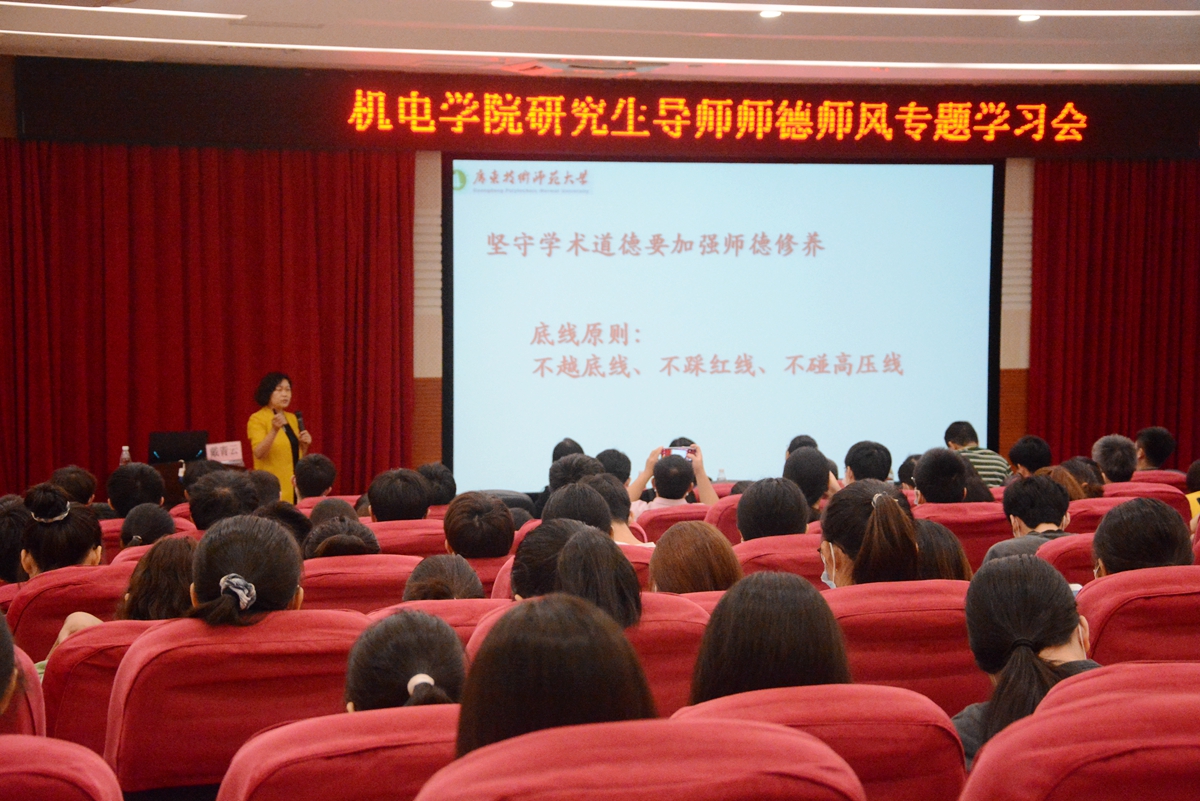 戴青云从习近平总书记关于师德师风的重要论述出发,围绕国家对教师师德师风有关政策要求、我校师德师风相关规章制度以及教师师德失范行为案例警示等方面进行深入阐述;她详细解读了教育部师德建设“六禁令”“红七条”“十准则”和研究生导师“八条准则”;她指出,研究生导师是研究生培养的第一责任人,研究生导师要坚守学术道德,树牢底线意识,切实增强师德师风思想自觉和行动自觉,坚守为党育人、为国育才的初心,不断涵养高尚师德,以德施教、以德育德,做党和人民满意的“四有”好老师。