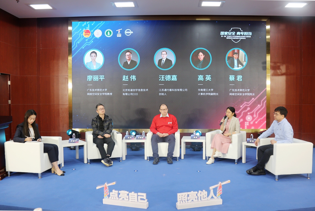在本届广东大学生网络安全攻防大赛中,还举办了网络安全前沿技术高峰论坛专家讲座,中国工程院院士沈昌祥分享了《抓住网络空间安全科技核心,促进学科建设与人才培养》的主题报告,随后的圆桌会议中,专家学者们围绕《青年大学生与国家网络安全》主题开展交流,现场氛围热烈激动。