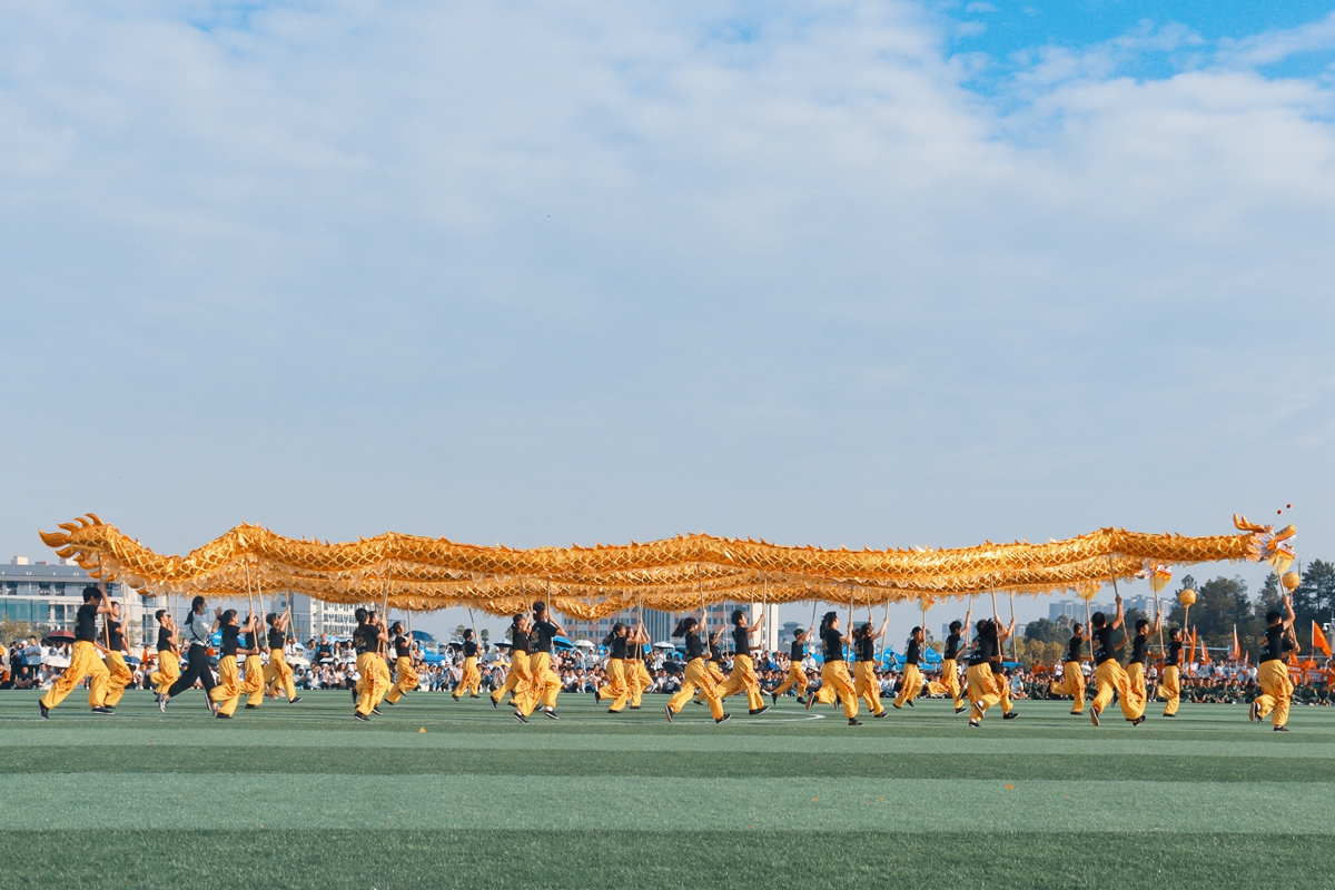 开幕式上还进行了啦啦操、舞龙舞狮、大型舞蹈表演、歌曲演唱等文体项目表演,精彩的文体表演充分展现了我校传统文化的积淀和我校浓郁的体育文化氛围。