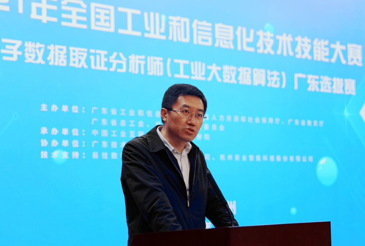 广东省工信厅副厅长曲晓杰发表讲话。他表示举办工业大数据算法技术技能大赛,是落实制造强省建设部署、推动我省制造业数字化转型、促进工业互联网和数字经济发展的有力举措,对加快我省工业大数据高技能人才队伍建设、培养广大教职工和学生技能实操能力、弘扬企业精益求精的工匠精神具有重要意义。