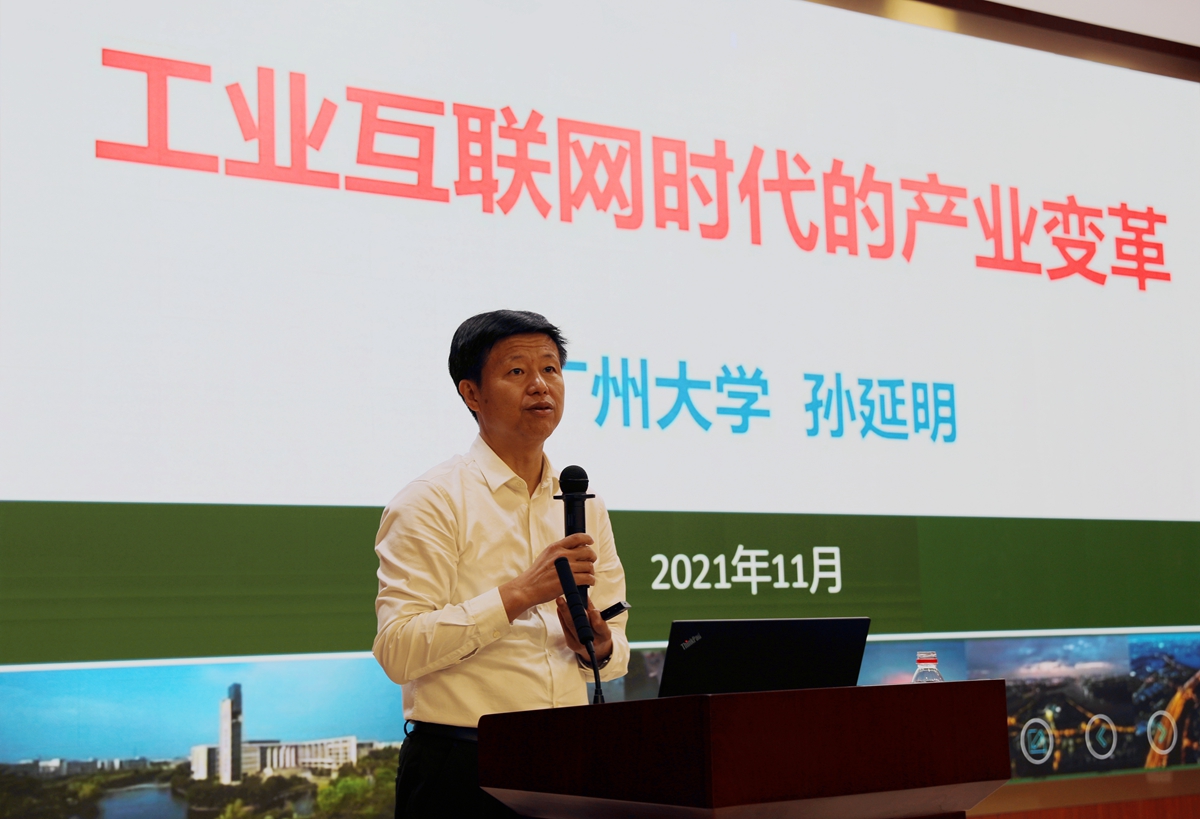 在本届全国工业和信息化技术技能大赛电子数据取证分析师(工业大数据算法)赛项广东省选拔赛开幕式上,邀请广州大学副校长孙延明教授为大家做了名为《工业互联网时代的产业变革》的主题报告。