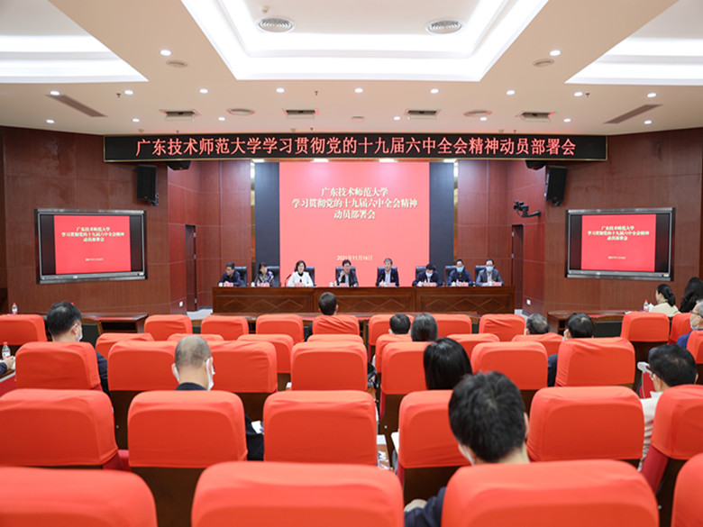11月16日下午,广东技术师范大学学习贯彻党的十九届六中全会精神动员部署会召开。省委教育工委党史学习教育巡回指导组第十三组成员,学校领导班子成员,学校党史学习教育领导小组成员、办公室成员,各二级党组织负责人、各职能部门负责人参加了会议。校长戴青云主持会议。