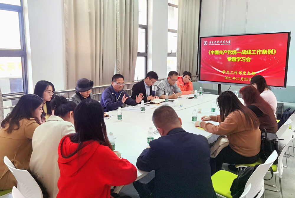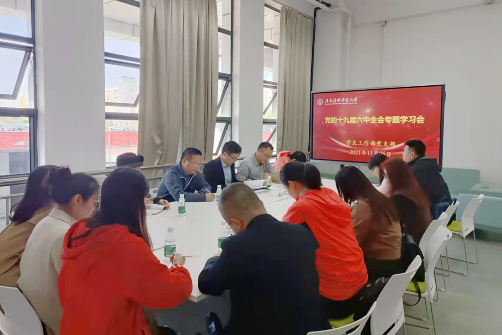 11月25日,学生工作部党支部开展学习贯彻党的十九届六中全会精神和《中国共产党统一战线工作条例》专题学习,学校党委副书记李向明同志以普通党员身份参加学习研讨。