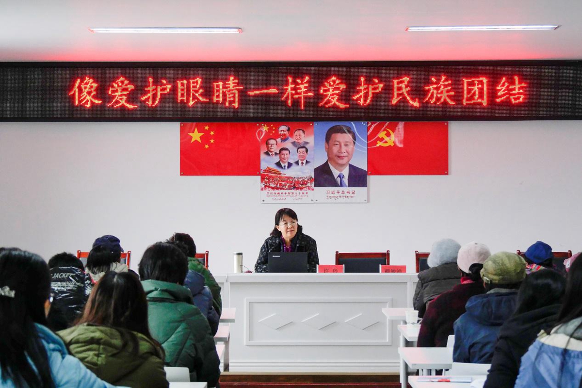 下午,在村民们聚集的米林县琼林村村委会报告厅里,许玲为村民们带来了一场“像爱护眼睛一样爱护民族团结”的主题讲座,为村民深入浅出地讲述了什么是民族团结,如何理解民族团结的极端重要性,一起深入学习了习近平总书记关于西藏工作的重要论述,并报告了我们前身为广东民族学院的广东技术师范大学为民族团结进步所作出的努力,表示我们将秉承民族教育的传统,充分发挥转型为职业教育培养师资的独特优势,为民族团结进步教育继续做出更大的努力。