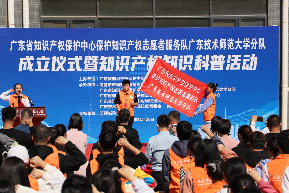 据悉广东省知识产权保护中心保护知识产权志愿者服务队广东技术师范大学分队是河源市首家高校知识产权保护及宣传服务队,我校将努力依托雄厚的专业背景及资源为知识产权的保护、创造、运用和管理提供高质量的个性化、全方位的服务,推动知识产权服务业向专业化、规模化、国际化发展。