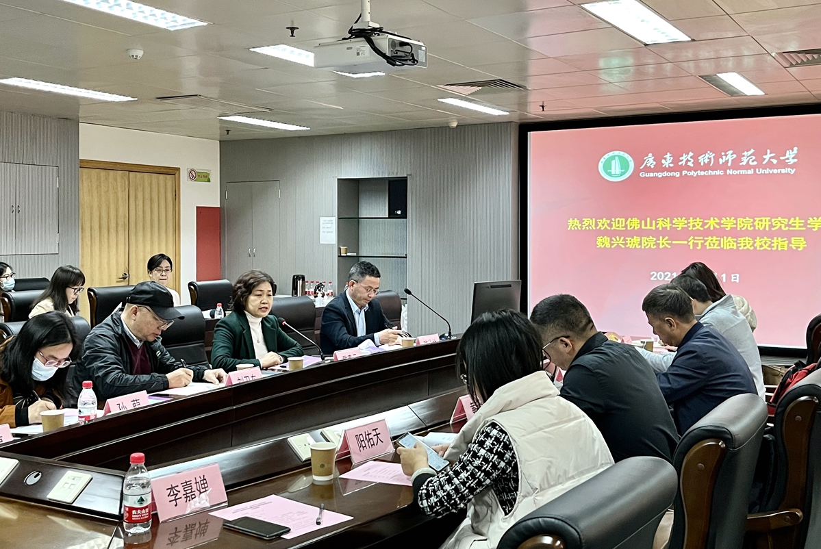 陈泳竹代表学校对佛山科学技术学院来校交流表示欢迎,并简要介绍了我校研究生教育办学历史及发展情况。