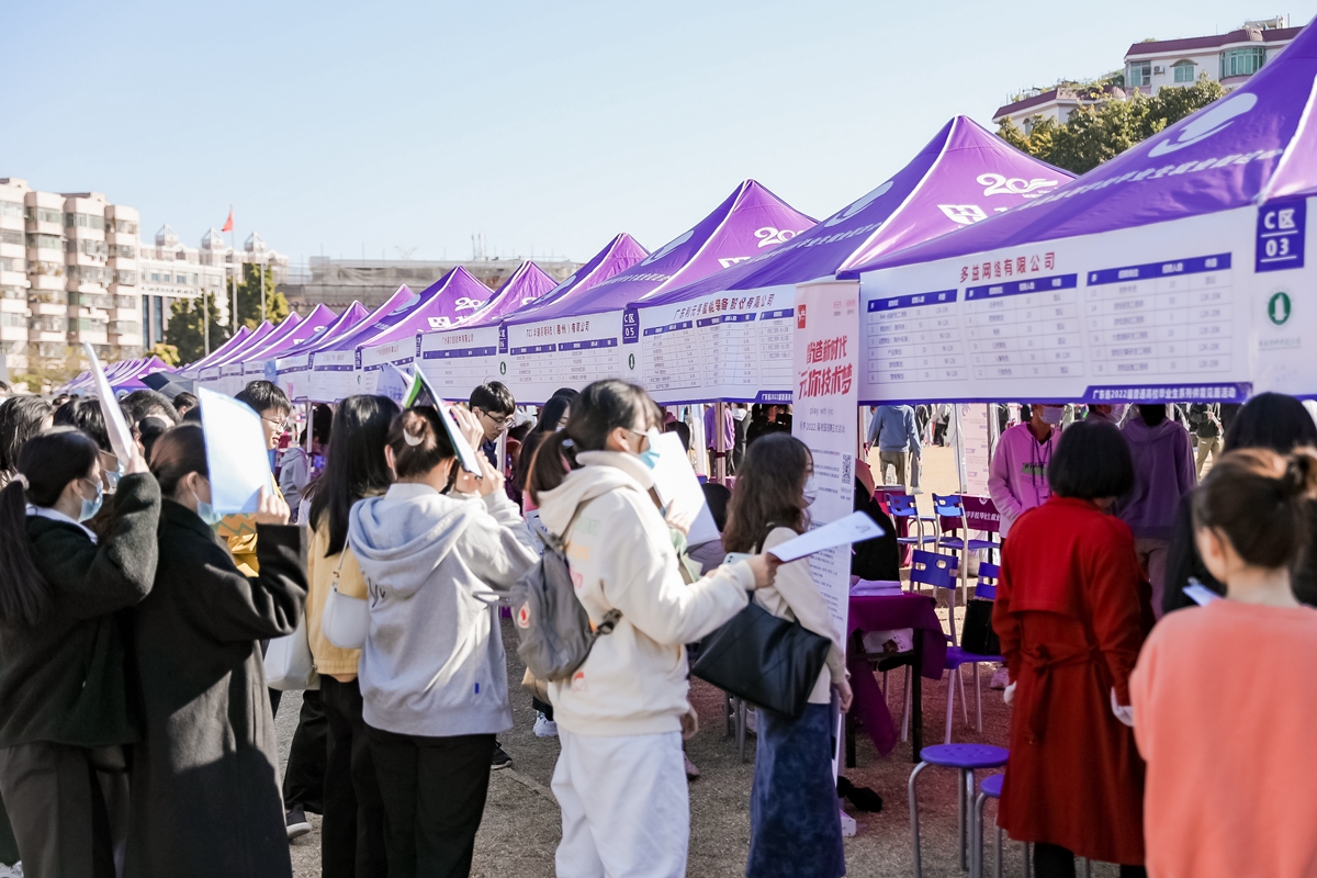 12月3日,由广东省教育厅主办,广东省高等学校毕业生就业促进会、深圳市龙岗区人力资源局、深圳市企业人力资源发展协会和我校承办的“广东省2022届普通高校毕业生系列供需见面活动(职业教育、信息与现代服务类专场)”在我校东校区田径场顺利举行。广东省教育厅就业创业促进处处长周昭国,学校党委书记凌靖波,校长戴青云,党委副书记李向明,副校长许玲、孙燕青及兄弟院校的就业督导专家一行亲临现场指导工作。